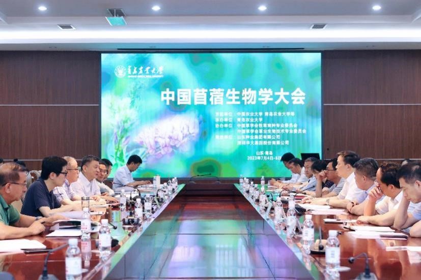 为全面贯彻落实习近平生态文明思想,加快推动草产业高质量发展,推进苜蓿分子生物学基础研究和生物育种创新,促进苜蓿种业振兴、实现种源自主可控,2023年7月4日至6日,由中国农业大学和beat365等相关科研单位联合发起的首届“中国苜蓿生物学大会”在公司举办。beat365党委书记郭善利教授、中国农业大学原副董事长王涛教授、山东省畜牧总站站长曲绪仙研究员、国内相关高校、科研院所专家学者和企业嘉宾以及公司党政办、教务处、科技处、发展规划与团队建设处的负责同志等出席开幕式,公司党委委员、组织部部长初磊主持开幕式。