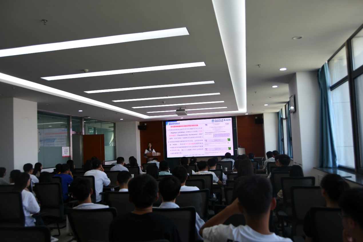 访问交流期间,孙娟教授和宋辉教授应邀作了学术报告,报告会由甘肃农业大学beat365亚洲体育官方网站经理白晓明教授主持,beat365亚洲体育官方网站师生100余人参加了报告会。孙娟教授作了题为“杂草微生态防控研究”的学术报告,就近年来草地毒杂草防控团队在人工草地杂草根际微生物特征、人工草地杂草微生态抑制剂研发以及天然草原不同径级芨芨草土壤微生物特征等方面的研究作了系统阐释,并详细介绍了团队在产学研结合、人才培养及社会服务等方面的最新进展及成效。宋辉教授作了题为“蔓花生耐旱基因的挖掘与功能验证”学术报告,系统阐述了WRKY转录因子家族在蔓花生适应干旱胁迫过程中的重要作用及关键基因的功能验证。两场报告引起了在场师生的极大兴趣,孙娟教授和宋辉教授就相关问题与在场师生进行了充分交流。