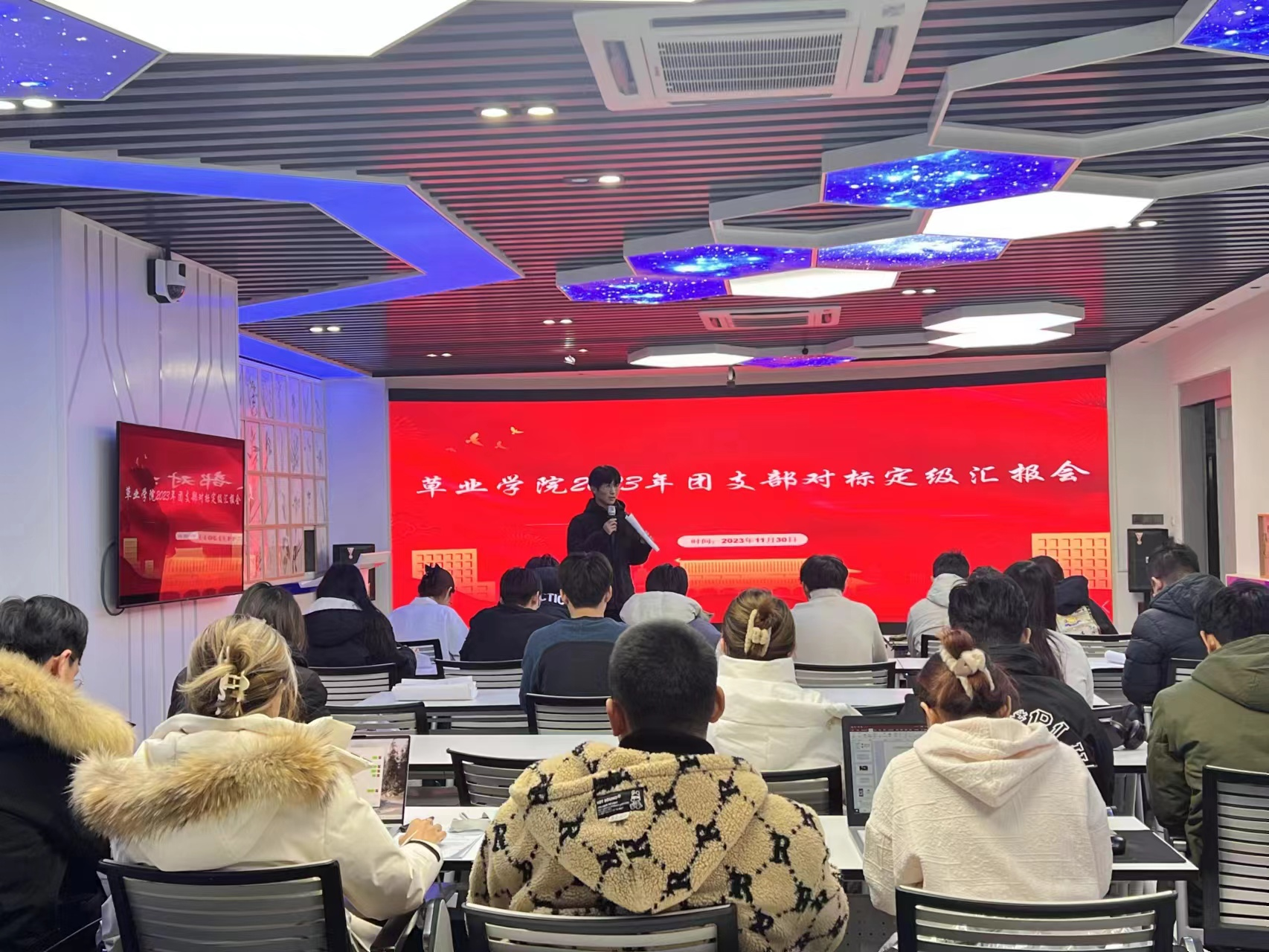 在2023年11月30日,beat365亚洲体育官方网站举办2023年团支部“对标定级”汇报会,此次会议由研究生会主席团及各部门部长组成评委团,对参与对标定级的团支部进行打分评议。