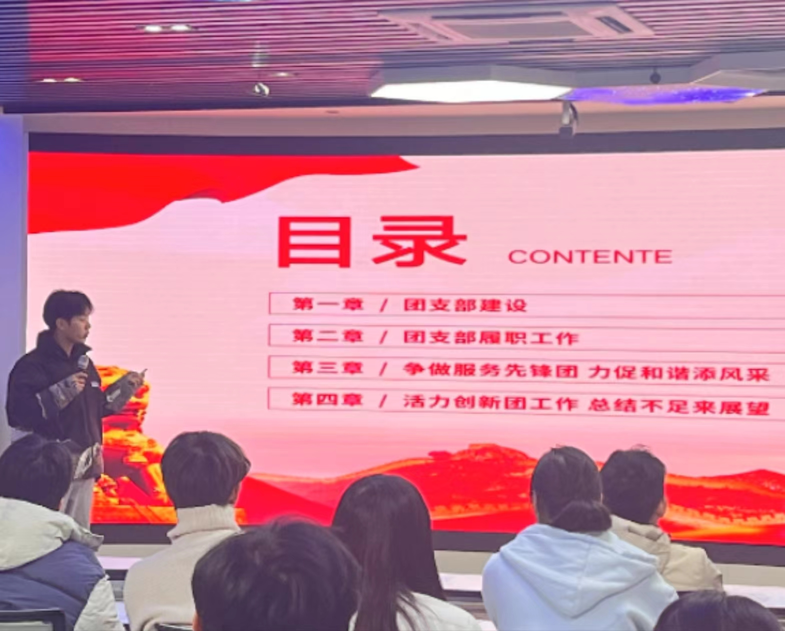各团支部汇报时间5-10分钟,分别从思想引领、团务管理、服务员工成长、社会实践四个方面进行展示,团支部书记充分讲述自身团支部的优势和长处,以及今后努力的方向,在各支部汇报结束后,评委们根据汇报的情况进行讨论,并对照每项评分规则进行打分,评分结果作为团支部对标定级的重要参考。