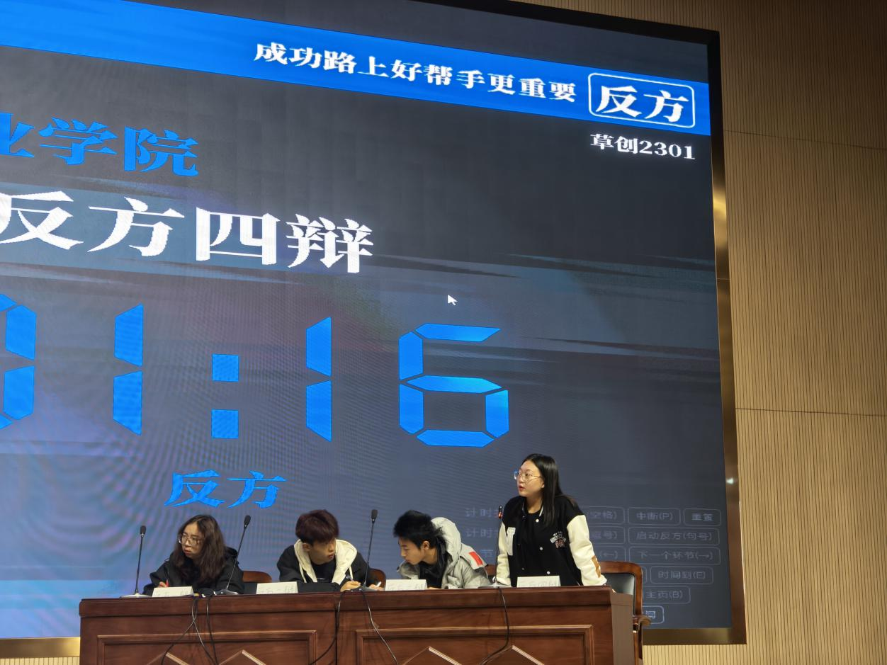 辩论赛决赛以“成功路上好对手和好帮手哪一个更重要”为辩题,由草坪科学与工程2302班代表队担任正方、草业科学(创新)2301班代表队担任反方。双方辩手唇枪舌战,你来我往,围绕着辩题展开了激烈的辩论。正方辩手观点清晰、论证有力,反方辩手也不甘示弱,提出了一系列有力的论据进行反击。双方辩手的精彩表现赢得了观众的阵阵掌声,体现了草业学子朝气蓬勃,积极向上的精神状态。