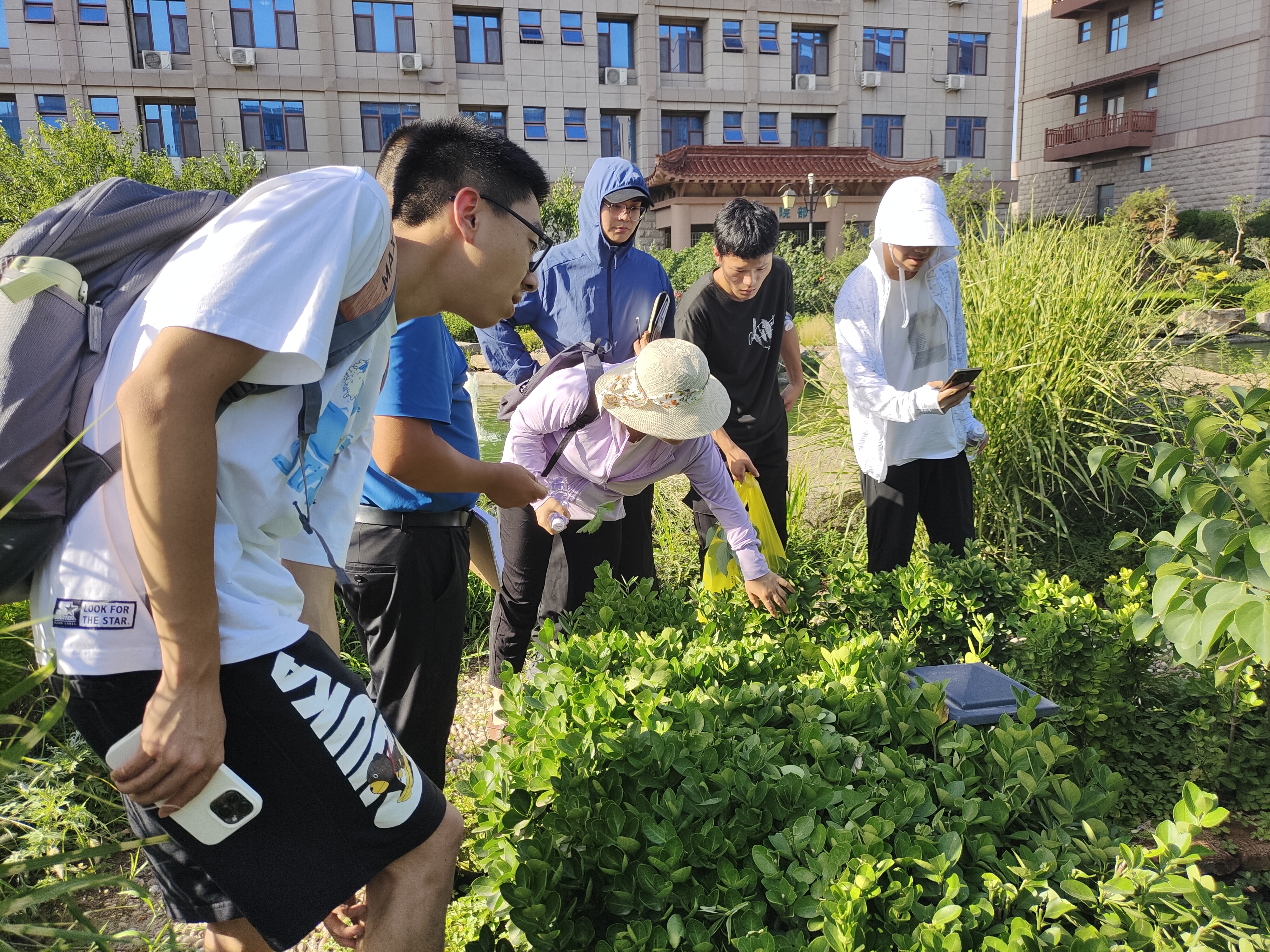 随后实践团成员们进入园区进行实地考察,通过参观植物景观,观察植物形态,认识了多种植物;在王海霞老师的讲解下,对园区内植物的特征、生活习性、病虫害的防治、杂草的利用进行了初步了解。最后,大家在园区内采集了植物标本,后续将进行蜡叶标本制作。
