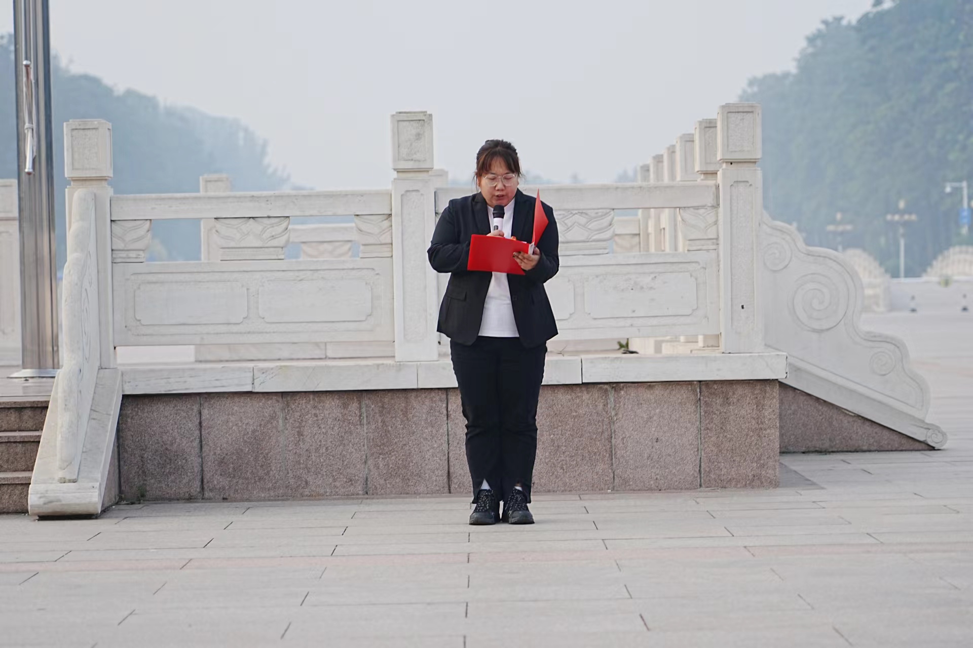 员工代表赵世钰做国旗下发言,她讲到,当今之青年,应立鸿鹄志,充分认识到青年员工身上肩负着的重大历史使命。她号召同学们从自己的本职工作出发,敢想敢为,善作善为;把自己的个人理想汇入时代洪流,把个人情怀融入家国情怀,自信自立,务实奋斗,用昂扬向上的奋斗态度,为实现伟大的中国梦贡献自己的力量。