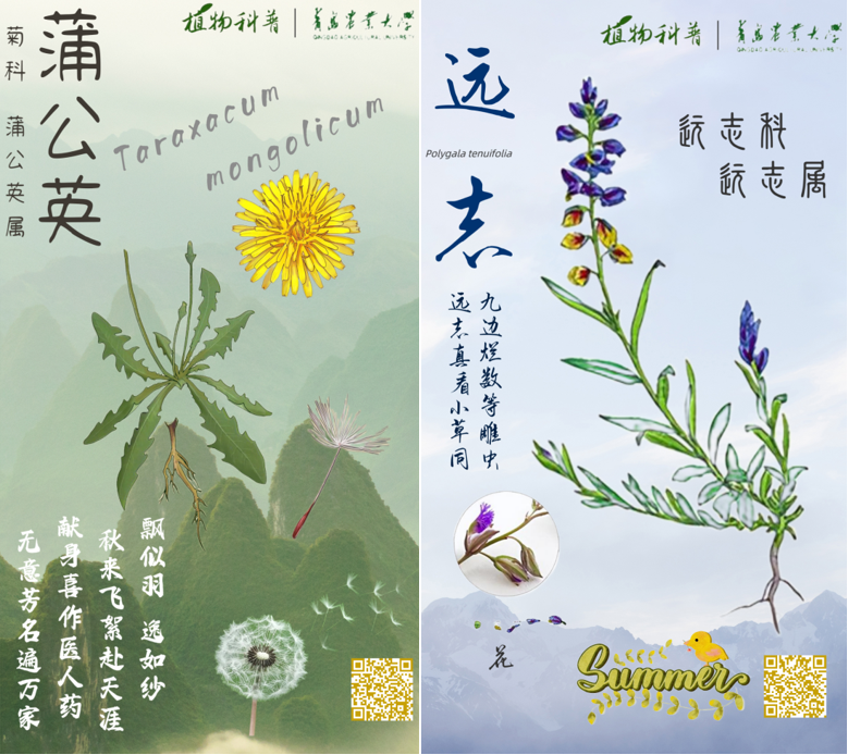 作品简介:作品以药用植物为主体,结合植物学知识、插图技术、中国优秀传统文化,多专业融合,绘制了一组药用植物宣传海报,有助于人们更加深入了解药用植物。