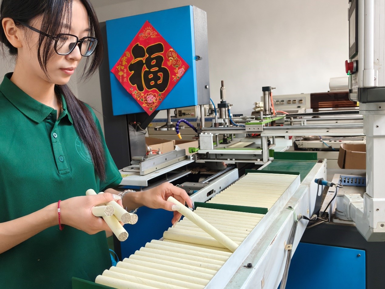 队员们深入艾草种植区与加工车间,亲手操作艾草收割机进行精准留茬控制,体验了低温烘干、石臼捣绒、卷条成型等融合传统与现代工艺的艾柱、艾条制作流程。在古法艾熏体验区,“闻香识草”的沉浸式体验让缕缕艾烟化为实践团成员对“立草立业”的深刻感悟:艾草不仅是草业种质创新的生动样本,更是生态循环与产业跨界融合的鲜活案例。