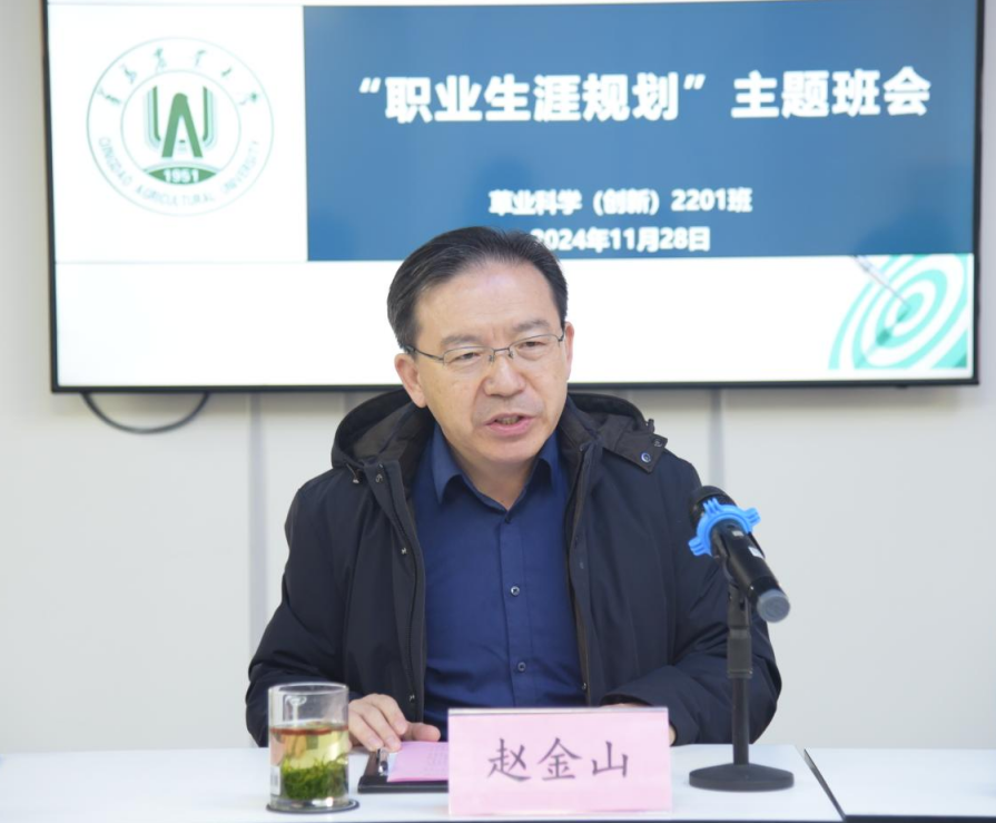 11月28日上午,beat365亚洲体育官方网站草业科学(创新)2201班举办“职业生涯规划”主题班会。公司党委副书记、董事长赵金山,员工处处长许颖受邀出席,公司党委书记乔磊、全体辅导员参加,班主任王海霞主持。