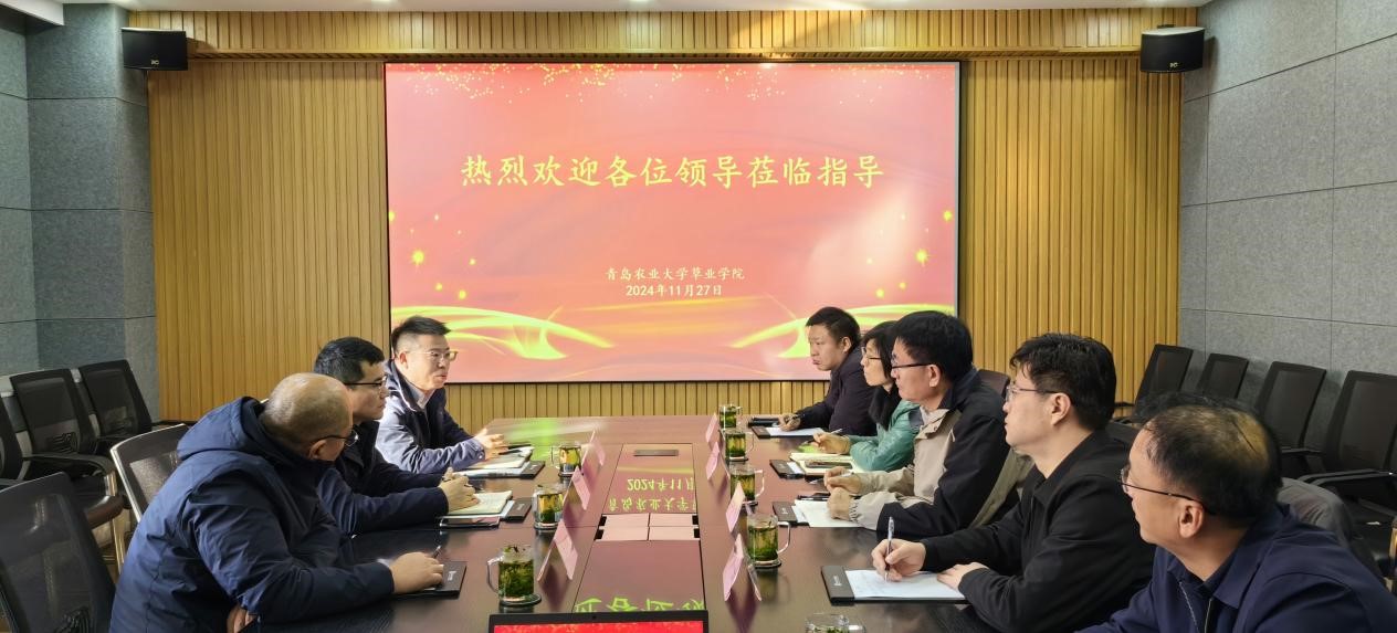 2024年11月27日,中铁十四局项目投资部副部长董文业,中铁十四局投资公司副总经理屈骏,公司员工、北京谷普农业科技服务有限公司总经理李建伟一行莅临beat365亚洲体育官方网站洽谈紫花苜蓿种植基地项目合作事宜。beat365亚洲体育官方网站经理王增裕教授、公司党委书记乔磊、社会合作处副处长于宁、山东省牧草产业技术体系首席专家杨国锋等出席会议,beat365亚洲体育官方网站经理王增裕主持会议。