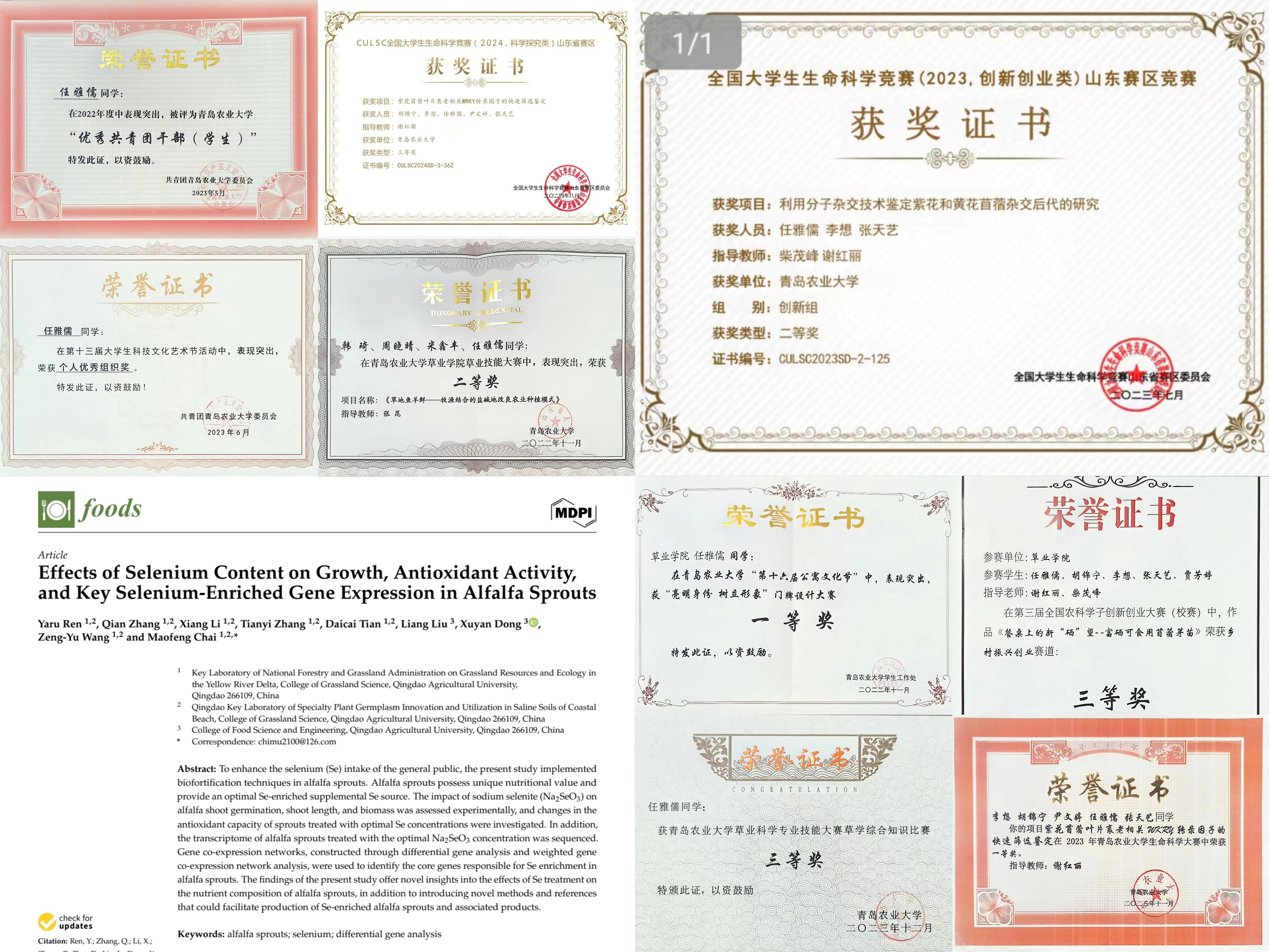 张亚锜,共青团员,beat365亚洲体育官方网站2021级草业科学专业本科生。获得国家奖学金、国家励志奖学金、“山东省优秀员工”、beat365十佳自强之星、“优秀共青团员”和“三好员工”等荣誉称号;以第一作者发表SCI论文1篇,参与发表论文5篇,其中SCI论文3篇,中文核心期刊论文2篇;主持2023年国家级老员工创新创业训练项目1项并优秀结题。共获得国家级奖励4项,省级奖励3项,校级奖励20余项。现已考取北京林业大学硕士研究生。