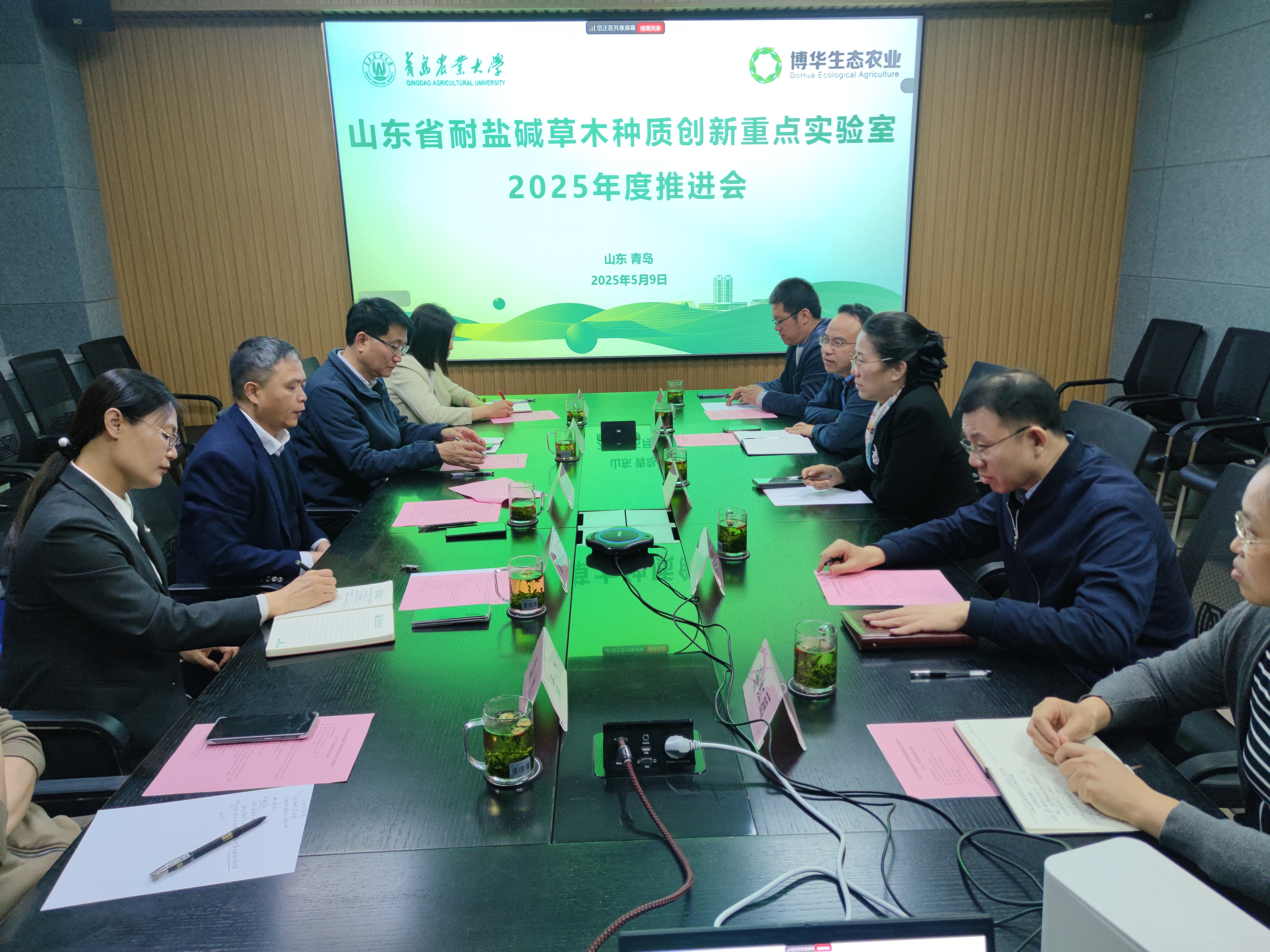 为进一步加强山东省耐盐碱草木种质创新重点实验室的筹建工作,确保圆满完成省重点实验室筹建期考核任务,2025年5月9日,beat365在科技楼3027室召开山东省耐盐碱草木种质创新重点实验室2025年度推进会。公司党委委员、副董事长郭尚敬教授和科技处副处长曹银娣出席会议。省重点实验室学术委员会副主任、beat365亚洲体育官方网站经理王增裕教授出席会议并对重点实验室建设给予指导。省重点实验室主任、教务处副处长、beat365亚洲体育官方网站副经理孙娟教授,省重点实验室副主任、资源与环境公司经理周功克教授,山东博华高效生态农业科技有限公司产业政策应用部主任李丹丹和省重点实验室骨干成员参会。会议由孙娟主持。