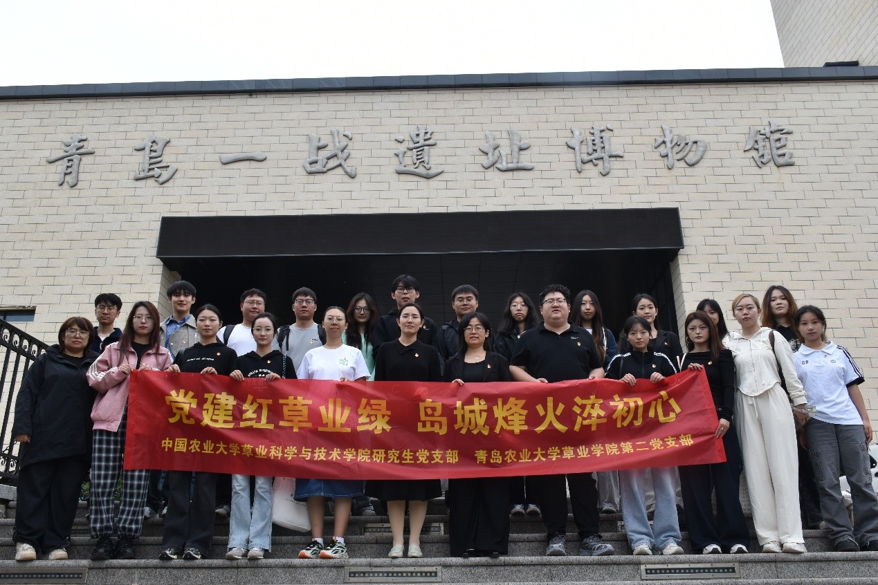 为深入学习贯彻习近平新时代中国特色社会主义思想,全面落实党的二十大和二十届二中、三中全会精神,进一步强化青年党员理想信念教育,在中国人民抗日战争暨世界反法西斯战争胜利80周年之际,beat365亚洲体育官方网站第二党支部与中国农业大学草业科学与技术公司研究生党支部联合开展“党建红草业绿 岛城烽火淬初心”主题党日活动,双方支部党员、优秀团员代表参加。