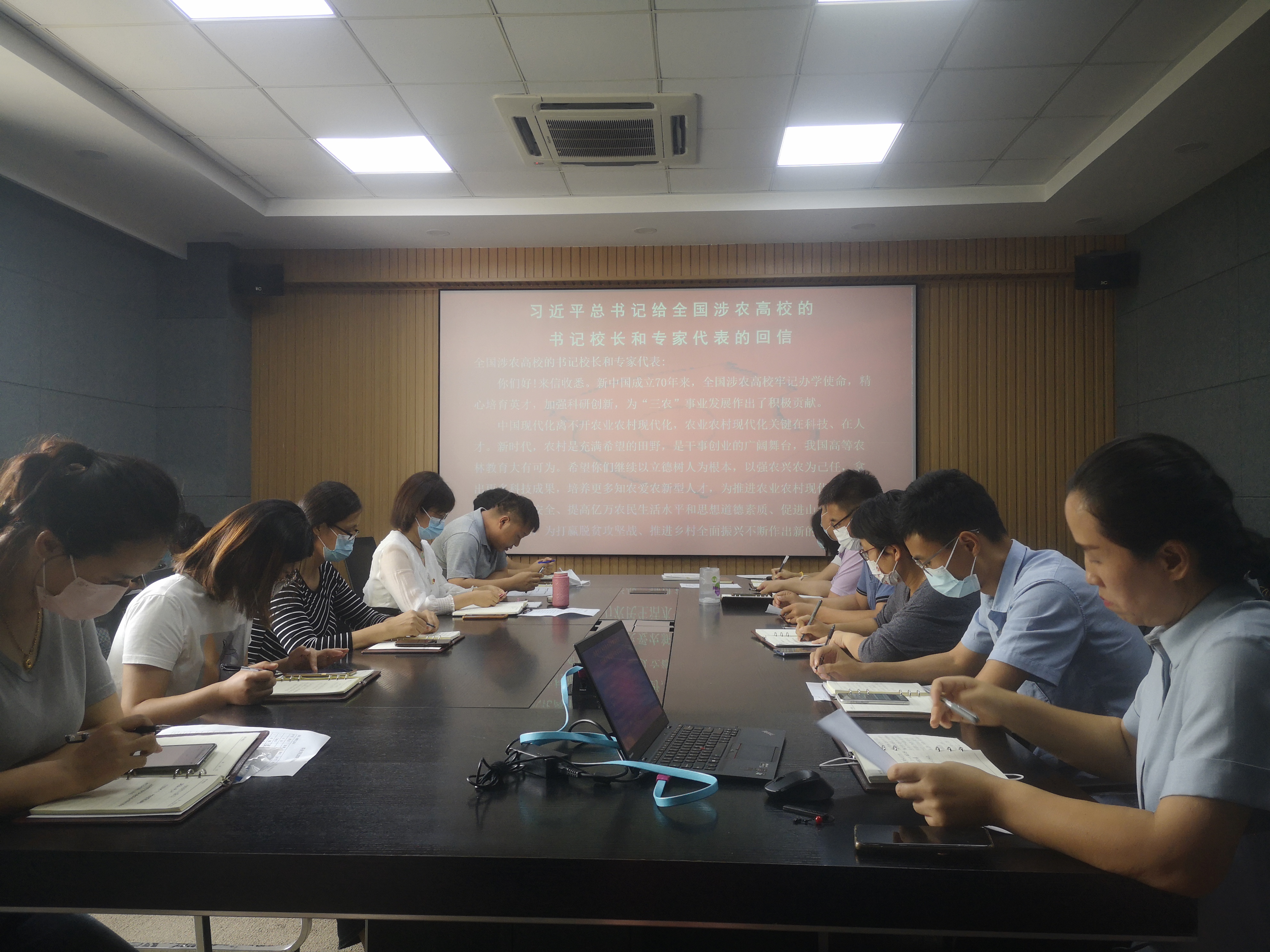 beat365亚洲体育官方网站分工会副主席马利超领学了习近平总书记给全国涉农高校的书记董事长和专家代表的回信。大家纷纷表示,要将总书记的殷殷嘱托化作干事创业的强大动力,把论文写在大地上,把青春挥洒在田野间,为推进生态文明建设、黄河流域生态保护和高质量发展以及乡村全面振兴不断作出新的贡献。