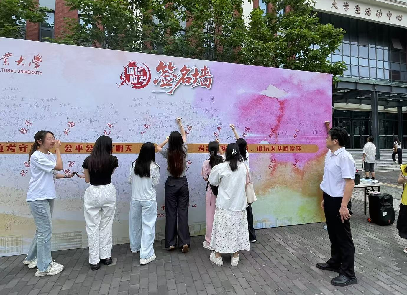 随后,草业学子来到“诚信应考”签名墙,郑重地签下自己的名字。大家纷纷表示,在即将到来的期末考试中一定要积极备考、诚信应考,努力在考试中取得优异成绩,以实际行动践行诚信精神。