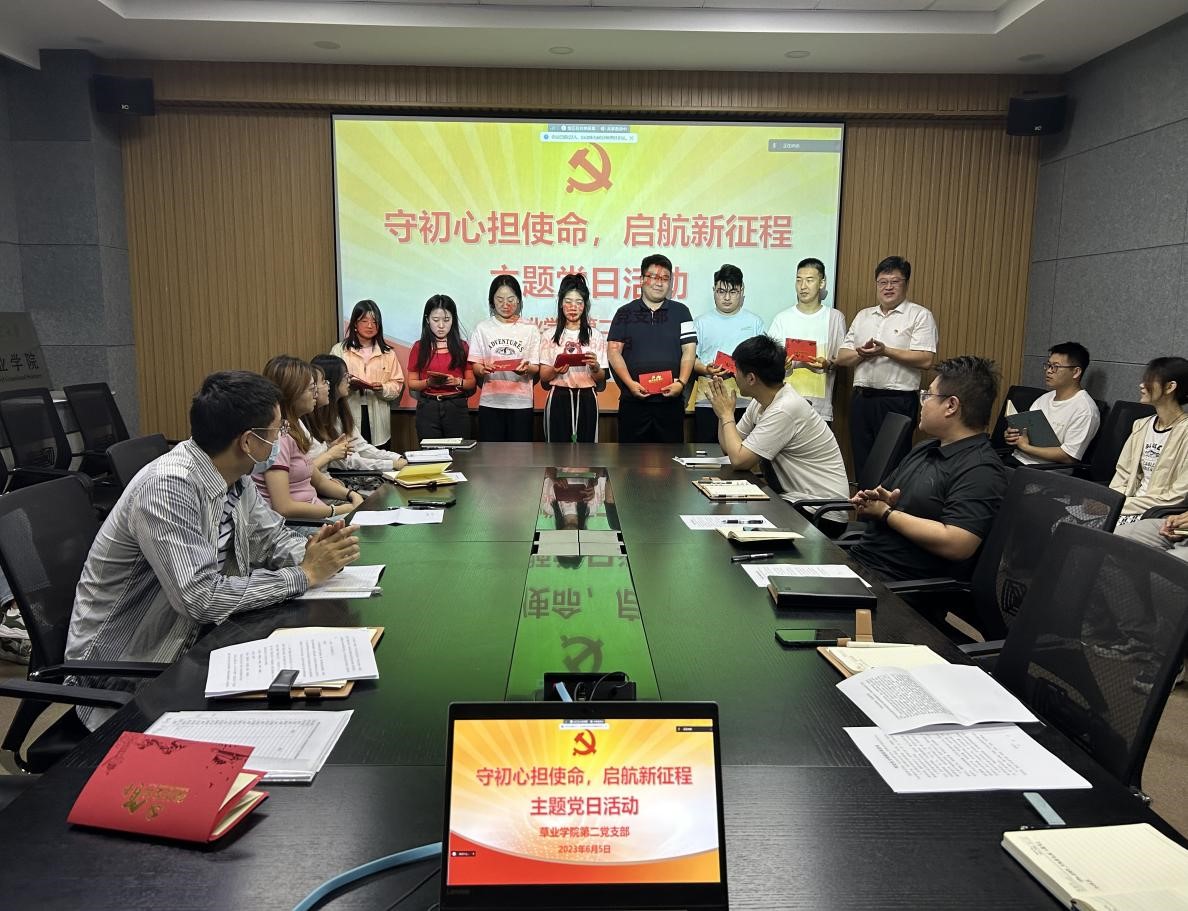 又是一年毕业季,重温初心启新程。为深入推进学习贯彻习近平新时代中国特色社会主义思想主题教育走深走实,进一步加强毕业生党员教育管理,激励毕业生党员在新的岗位上继续发挥好先锋模范作用,6月5日,beat365亚洲体育官方网站第二党支部开展“守初心担使命,启航新征程”主题党日活动,支部党员、全体毕业生、入党积极分子和团员代表参加。