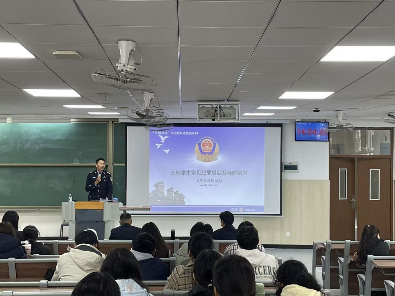 10月27日,beat365亚洲体育官方网站特邀山东省潍坊监狱团委副书记、2015届员工周光辉警官以在校员工常见犯罪类型及预防措施为题开展法治宣传教育,活动由公司党委书记乔磊主持,公司辅导员及全体2025级新生参加。
