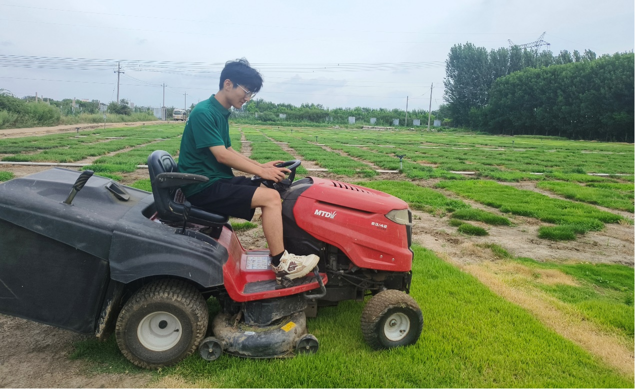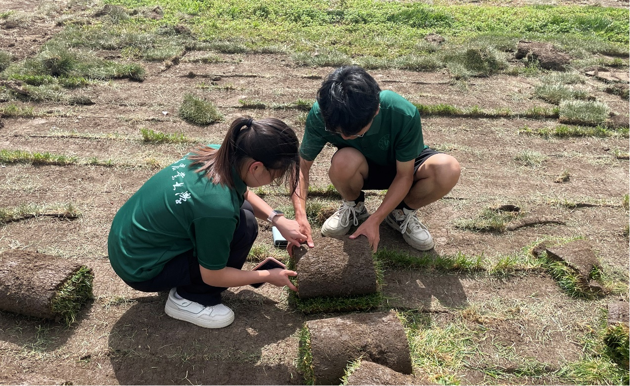 接着,队员们深入草坪生产一线,亲身体验关键环节。通过实地驾驶草坪修割机、进行草坪草的收拢、卷制草卷及装载作业,完整参与了从新鲜草料到商品化草坪产品的加工流程。通过这些实践操作,队员们掌握了草坪草商品化处理的技术要点,并建立起对草坪产业从田间生产到加工流通完整链条的认知。